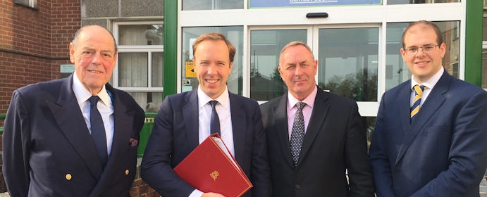 Photo: Sir Nicholas Soames MP, Member of Parliament for Mid Sussex; Matt Hancock MP, Minister of State for Digital; Councillor Garry Wall, Leader of Mid Sussex District Council; Councillor Jonathan Ash-Edwards, Deputy Leader of Mid Sussex District Council