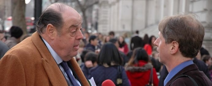 Sir Nicholas Soames being interviewed by Bob Dale of BBC Sussex about his objections to the proposal for a second runway at Gatwick Airport on the occasion of the handing in of a letter to the Prime Minister at No 10 Downing Street on Monday, 23rd March, 2015.