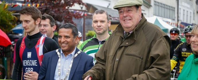 Nicholas Soames with Mayor Sujan Wickremaratchi starting the Greater Haywards Heath Bike Ride on Sunday, 31st May. Nicholas said; “This is a truly fantastic and brilliantly supported event.”