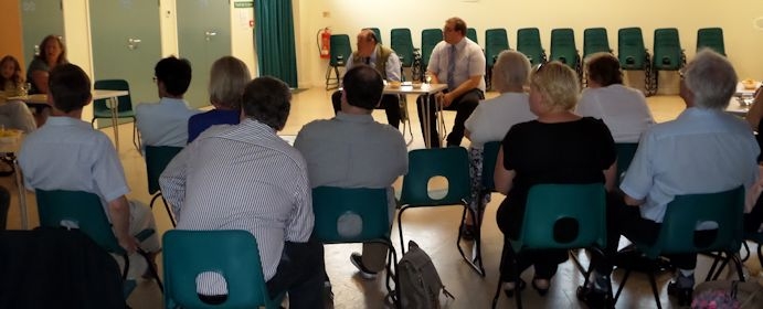 Nicholas Soames discusses local and national issues at the Meet Your MP evening at the Ashenground Community Centre in Haywards Heath, Friday 4th July.