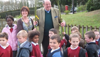 Nicholas received a warm welcome from the children at Heyworth Primary School in Haywards Heath on Friday in appreciation of his sponsorship of a Willow arbour.