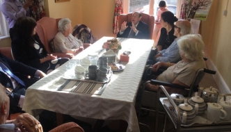 Sir Nicholas Soames visits Maplehurst Care Home in Haywards Heath.