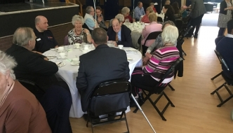 Sir Nicholas Soames enjoying the Silver Sunday Tea at Clair Hall in Haywards Heath.