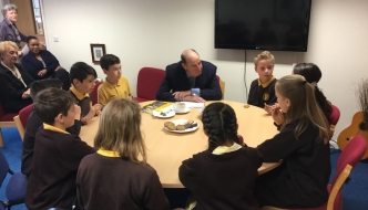 Sir Nicholas chats with Youth Councillors from St Wilfrid's Catholic School in Burgess Hill.