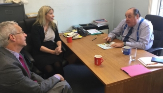 Sir Nicholas meets Colin Burgess and Caroline Harding of St Peter and St James Hospice.