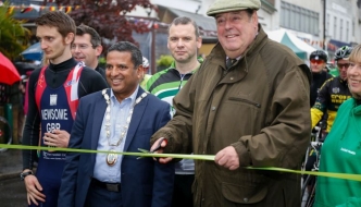 Nicholas Soames with Mayor Sujan Wickremaratchi at the Bike Ride start.