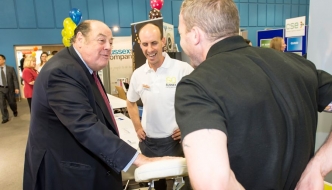 Sir Nicholas visits exhibitors at the Burgess Hill Means Business Exhibition.