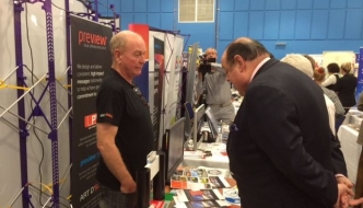Nicholas Soames attends the Burgess Hill Means Business Exhibition.
