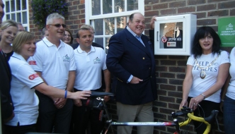 Nicholas Soames unveils first Bike Ride defibrillator outside town hall in Haywards Heath.