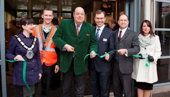Town Mayor Cllr Liz Bennett and Nicholas Soames open the new railway station in East Grinstead.
