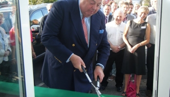Nicholas cuts the ribbon to officially open Tracmaster's new Burgess Hill premises
